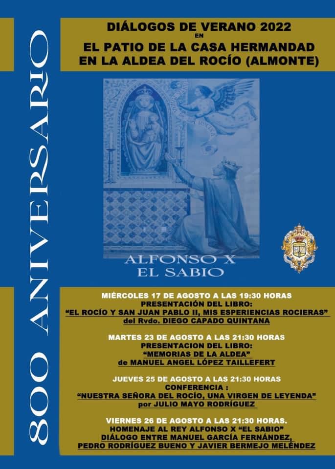 DIÁLOGOS DE VERANO EN LA CASA DE LA MATRIZ | La Hermandad Matriz, a través de la Delegación de Formación, organiza un ciclo de actividades culturales que concluirá el día 26 de agosto con un homenaje al Rey Alfonso X » El Sabio», con motivo del VIII Centenario de su nacimiento.