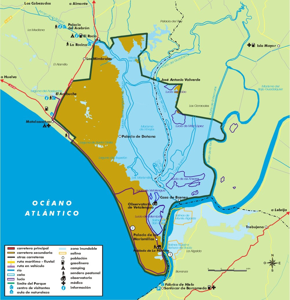 La visita al interior del Parque Nacional de Doñana sólo puede realizarse a través de los servicios de la Cooperativa «Marismas del Rocío, entidad privada a la que la Administración del Parque tiene otorgada la correspondiente concesión. Se trata de un interesantísimo recorrido en vehículos todo-terreno por los diferentes ecosistemas del Parque: Para poder realizarlo se debe solicitar reserva previa en los teléfonos 959 43 04 32 y 959 430451.