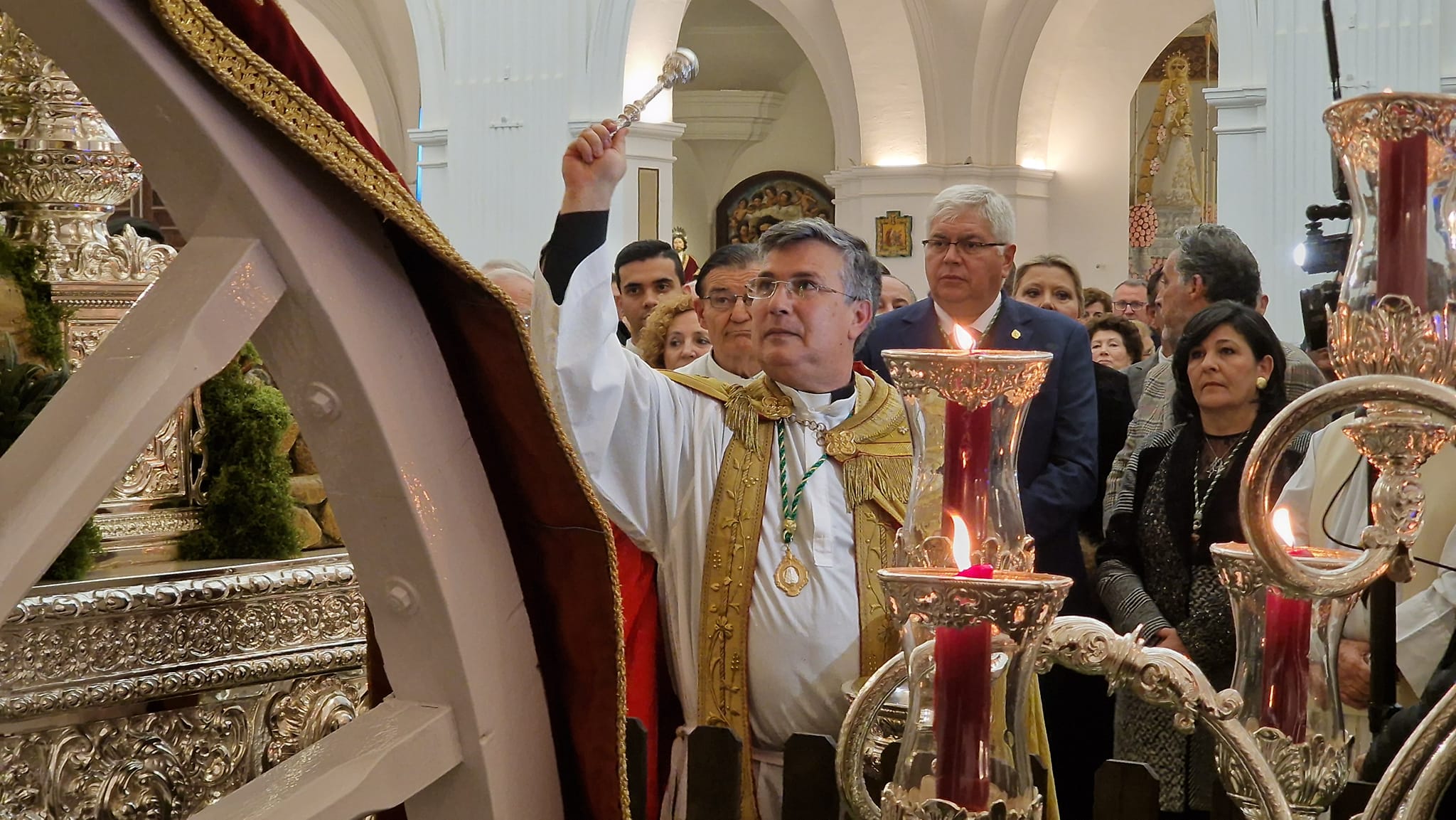 Las figuras, un total de 12, son obra del afamado escultor José Luis Mayo Lebrija, mientras que la estructura ha sido cuidadosamente elaborada en poliestireno, escayola y pintura acrílica, respetando cada rincón de la carreta. Destaca el varal del Simpecado, convertido en un árbol que sostiene al Ángel anunciador bajo la paloma que simboliza a nuestra Madre, la Virgen del Rocío.