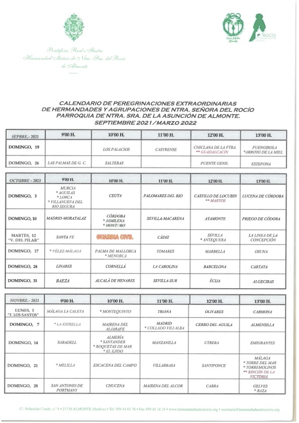 Un recordatorio que hacen para que “sigamos siendo muy escrupulosos en el cumplimiento de las normas generales establecidas para protegernos de este virus antisocial”. Teniendo en cuenta la gran afluencia de personas que congregan muchas de estas peregrinaciones. Este calendario finalizará el próximo domingo 27 de marzo.