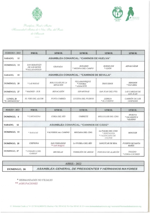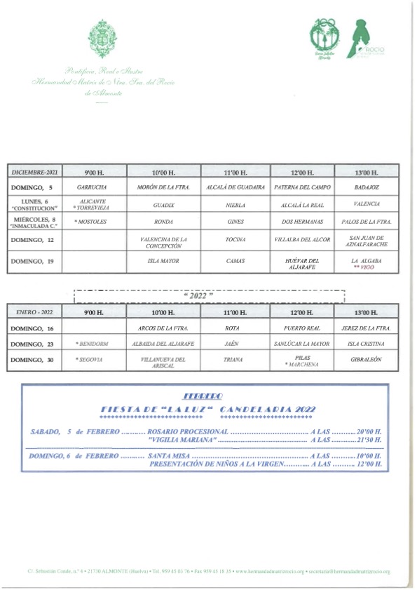 A pesar de la alta incidencia de estas semanas, la Hermandad Matriz ha informado a las filiales que peregrinarán en este trimestre que “no habiendo normas restrictivas de las autoridades sanitarias que limiten los movimientos o aforos, no vamos a establecerlas nosotros” por lo que avanza con normalidad la agenda rociera.