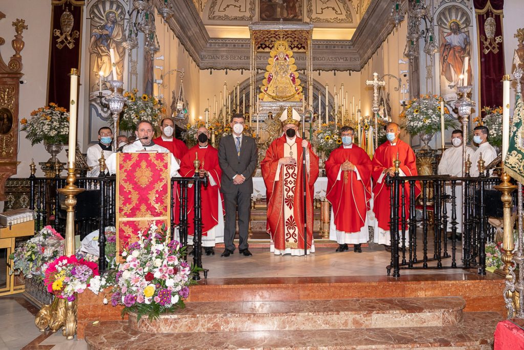 Posteriormente, ofició la Santa Misa que estuvo concelebrada por el párroco de Almonte y el vicario parroquial. El canto estuvo a cargo del Coro de la Hermandad del Rocío de Gines. El presidente de la Hermandad, Santiago Padilla, quiso agradecerle la dedicación y compromiso por la difusión de la devoción a la Patrona de Almonte.