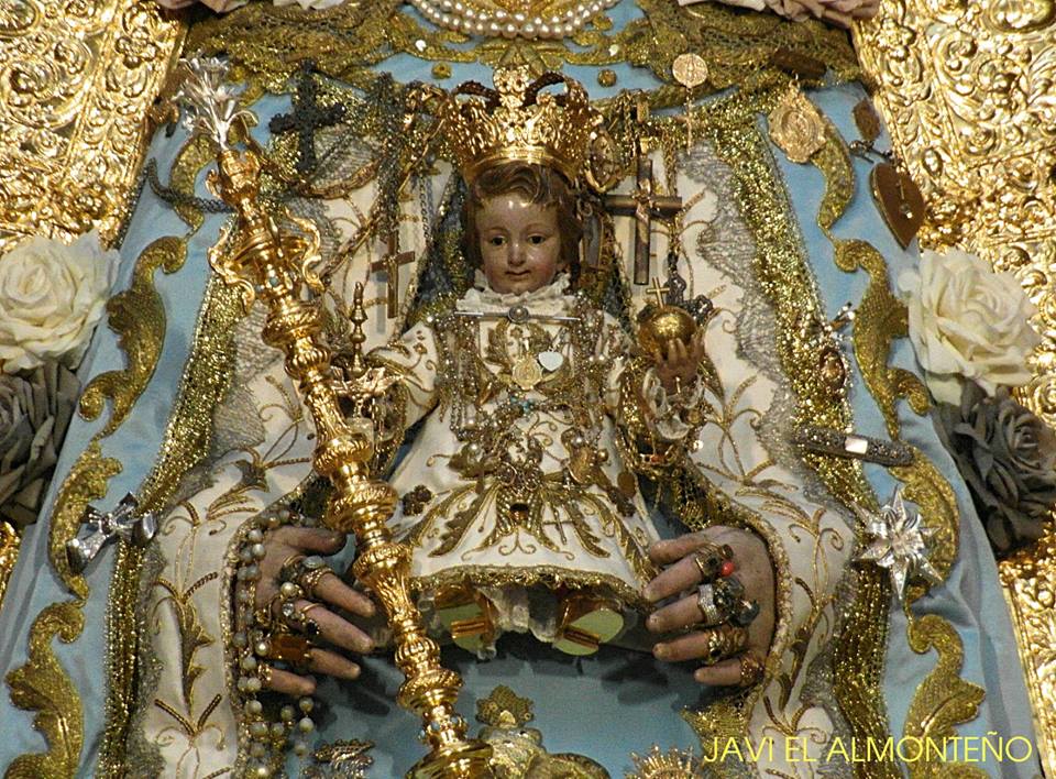 La Virgen luciendo el Lazo de platino y brillantes que le regalara el FORO en el año 2003