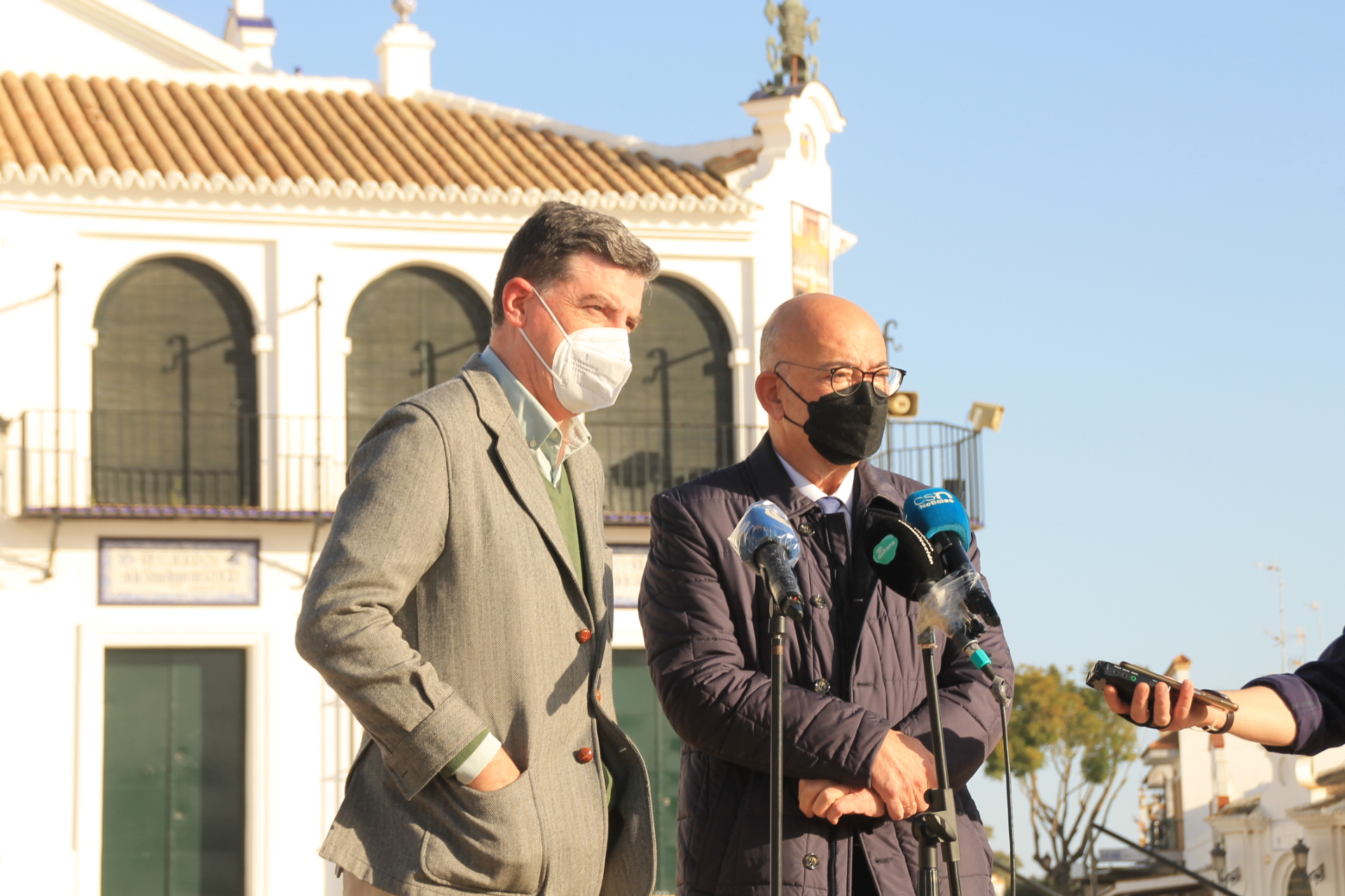 Hasta El Rocío se han acercado el presidente de la Matriz, Santiago Padilla; el presidente de CECSA, Sixto Marín Orta; el director general de la compañía de electricidad del Condado, Sixto Marín Aragón; y el director técnico, Carlos Botrán. A las puertas del Santuario, han explicado a los medios los detalles de estos trabajos.