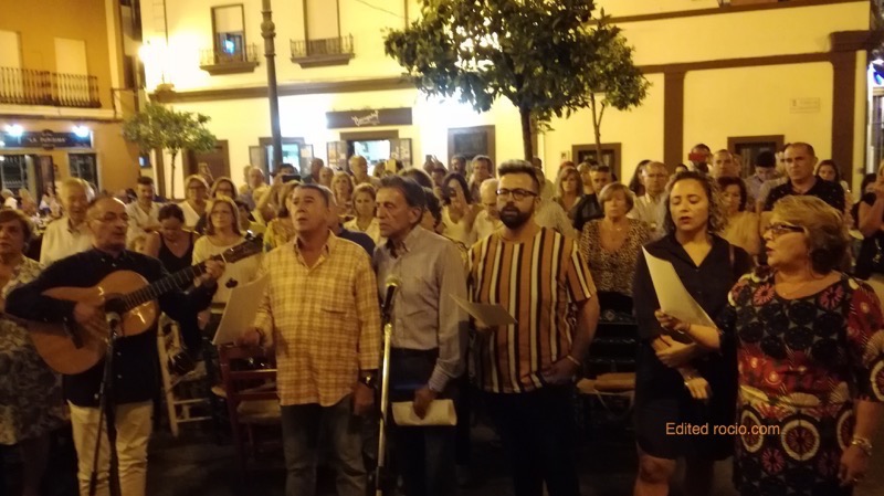 Ya las temperaturas parece que han sufrido un ligero cambio, pero sin embargo «el calorcito» que siempre se siente en la Casa Hermandad del Rocío de Isla Cristina, en esa maravillosa Plazoleta de San Francisco, no cambia y, una vez más, se demostró este último día trece del mes de septiembre, cuando después del toque de campana y, ante un gran número de personas, la guitarra de Rafael Moreno comenzó a dar los primeros toques para que todo el grupo «Duende y Compás» de Moguer comenzara a cantar la antigua Salve de la Hermandad de su pueblo. Y como no podía ser de otra manera, recibieron el cariño, en forma de aplauso de todos, sólo roto cuando el Hermano Mayor, Emilio Jesús López Maestre, comenzó a dar los vivas.