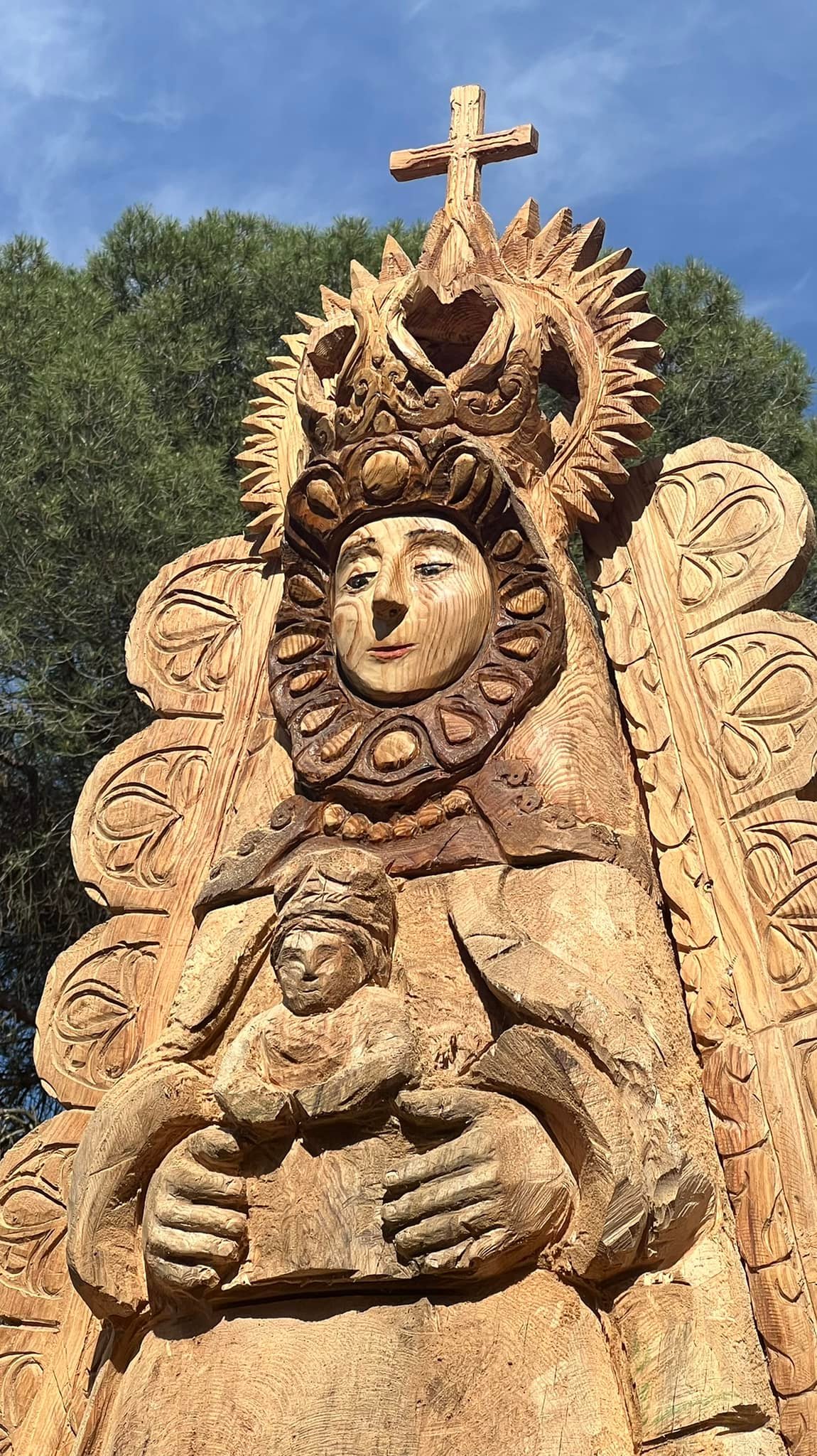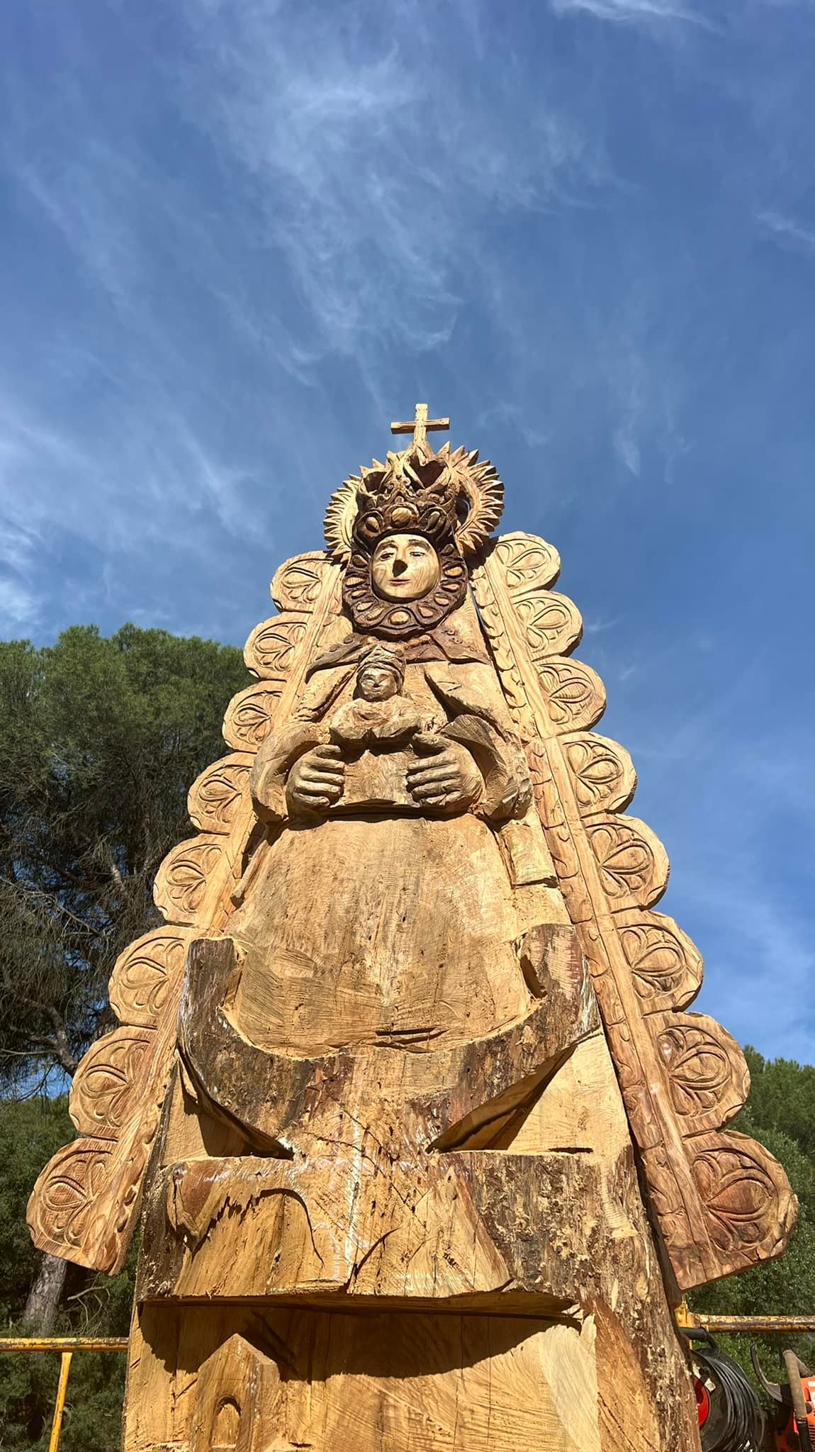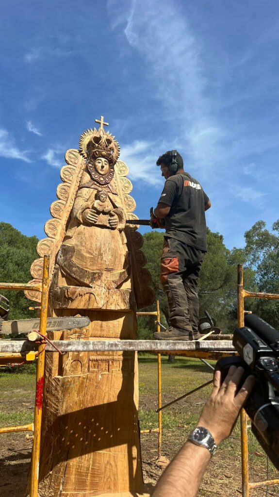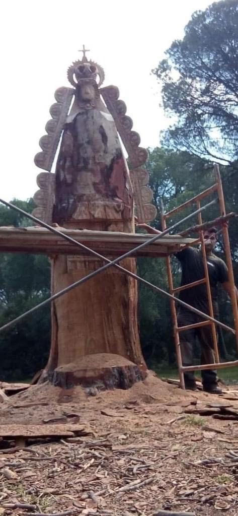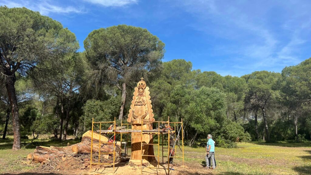 Tras la muerte del pino se ha decidido tallar en su tronco y en el mismo lugar una imagen de la Virgen del Rocío.