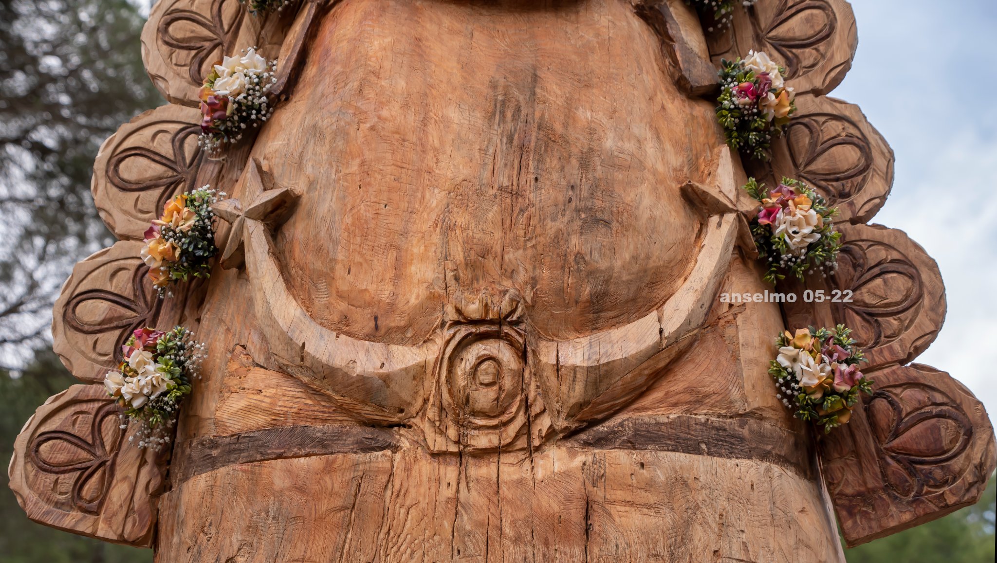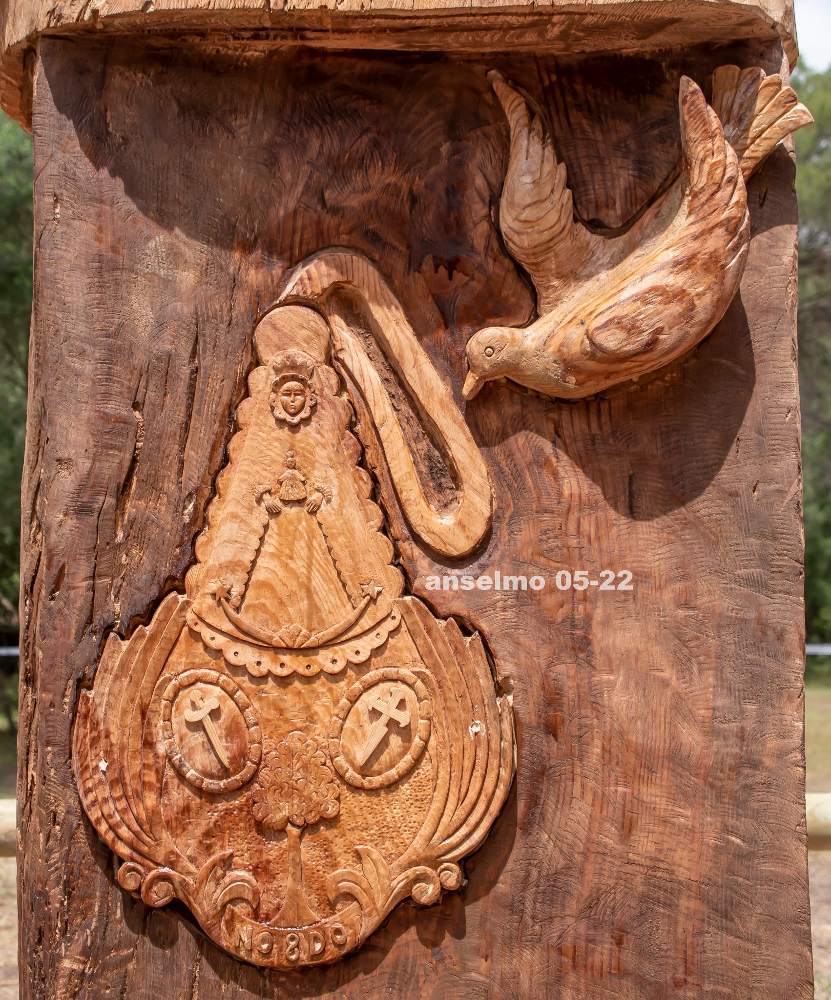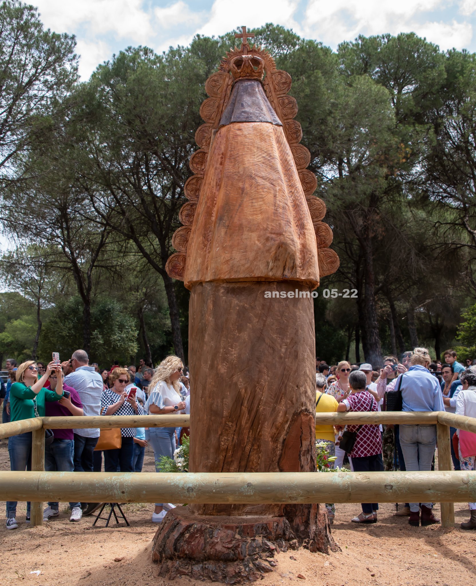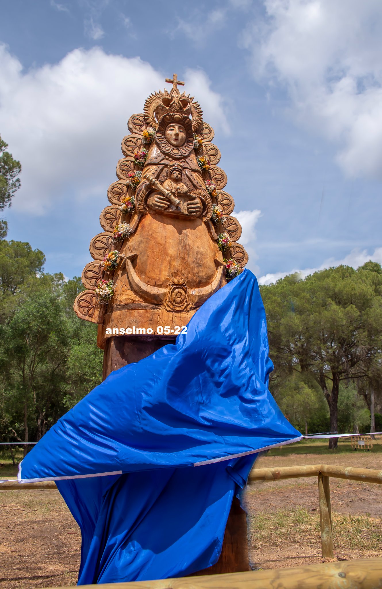 Tras la muerte del pino se ha decidido tallar en su tronco y en el mismo lugar una imagen de la Virgen del Rocío.