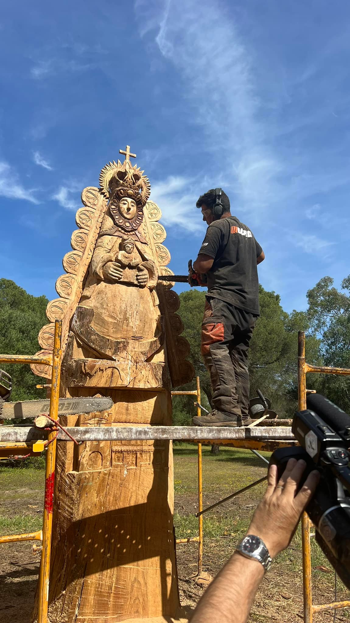 Hoy domingo 15 de mayo a las 13 horas será inaugurada está magnífica escultura realizada con una motosierra por él escultor gallego Eugenio Linares sobre el tronco del emblemático Pino de los mil duros.