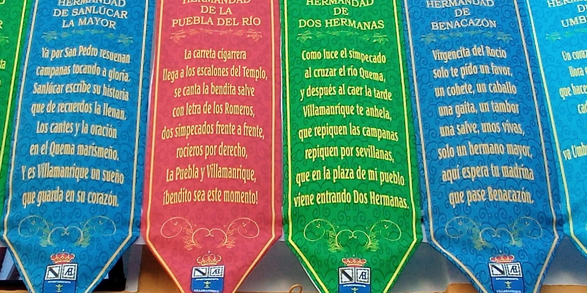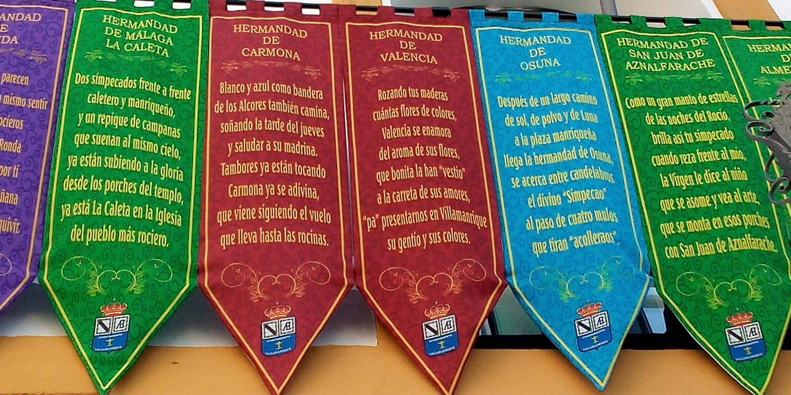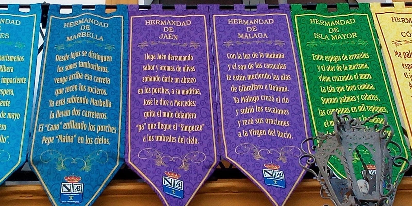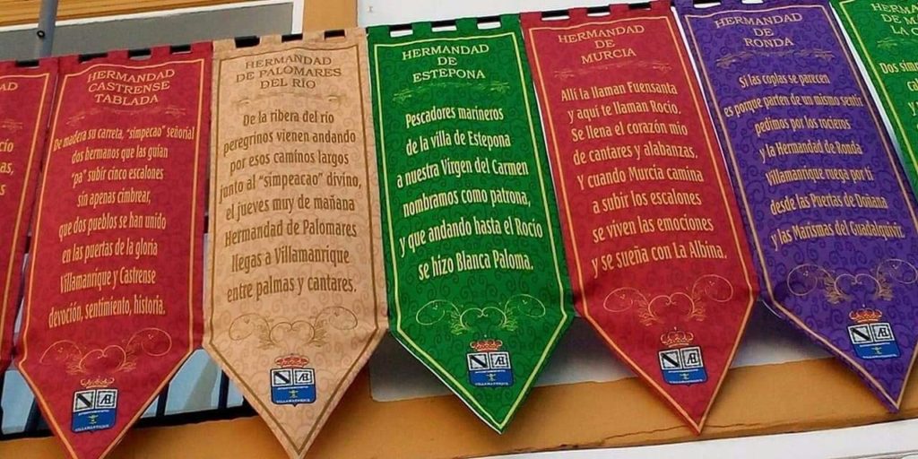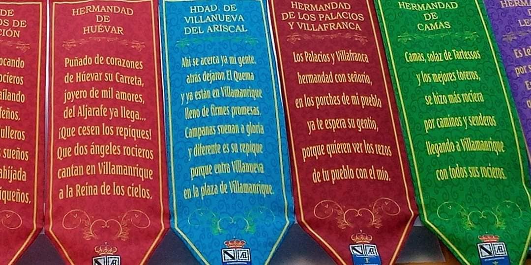 El pueblo de Villamanrique de la Condesa adorna su plaza del Ayuntamiento con un bello gesto hacia todas las Hermandades que tienen paso por su plaza en nuestro caminar hasta la Blanca Paloma.