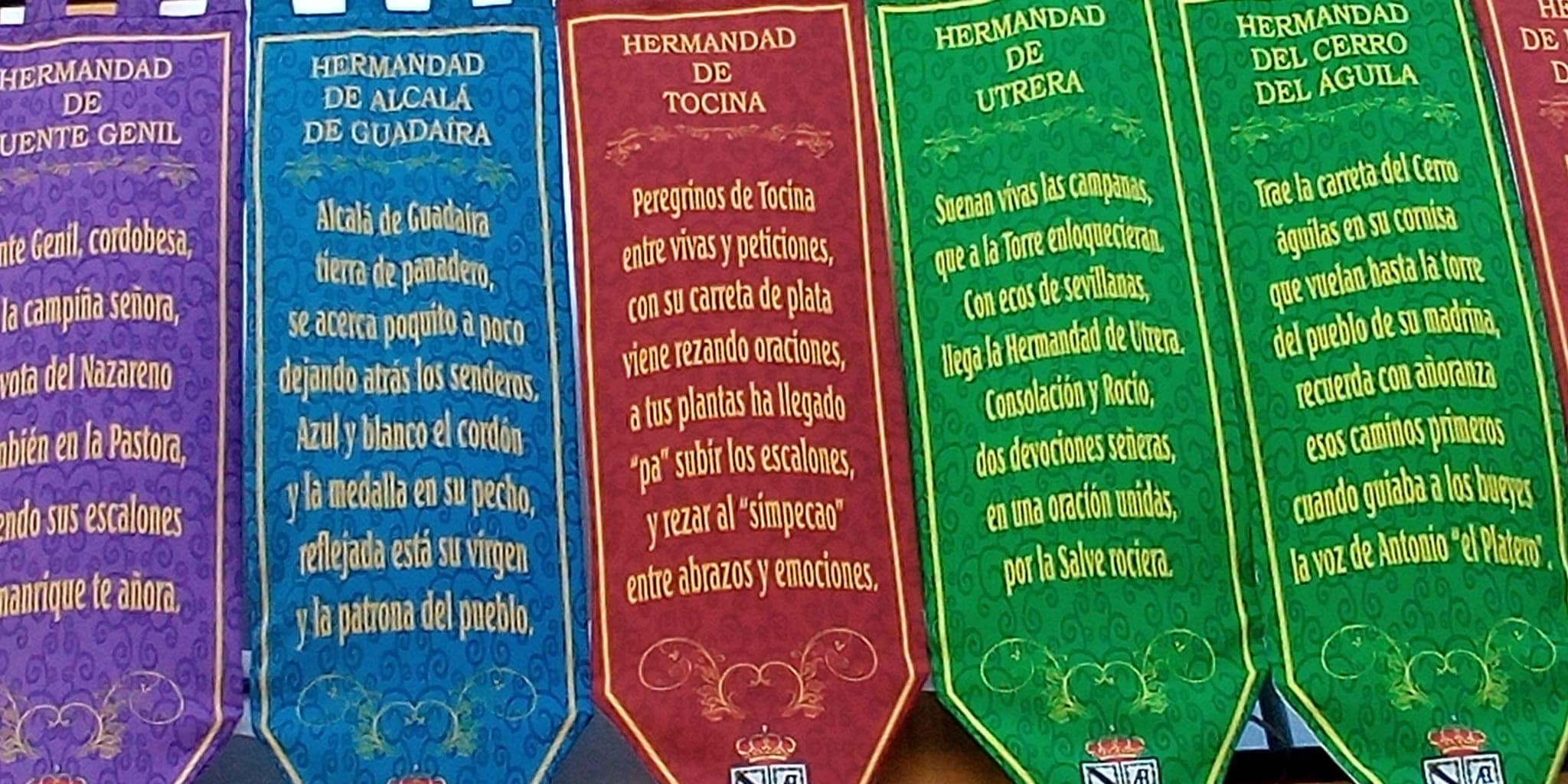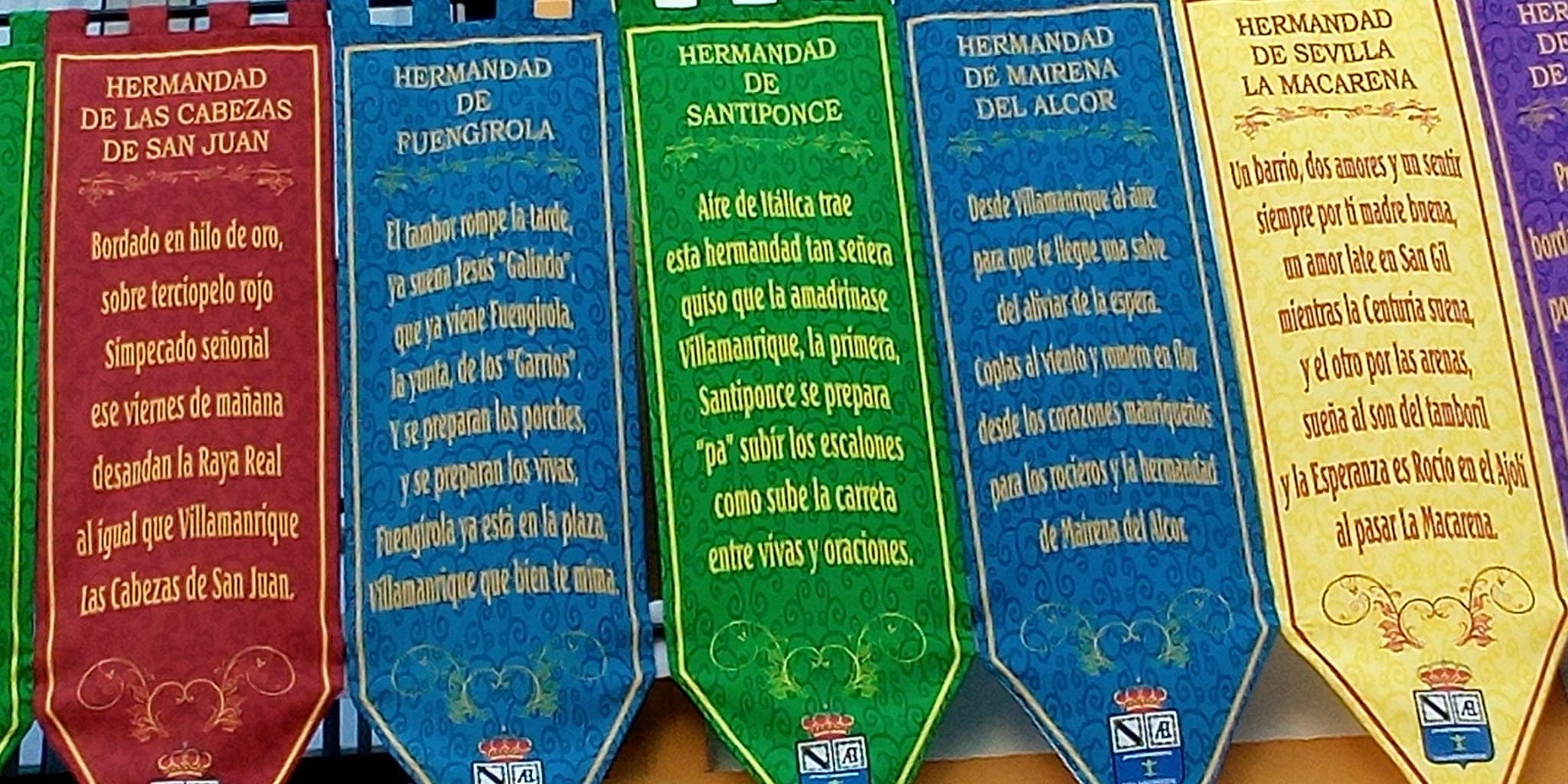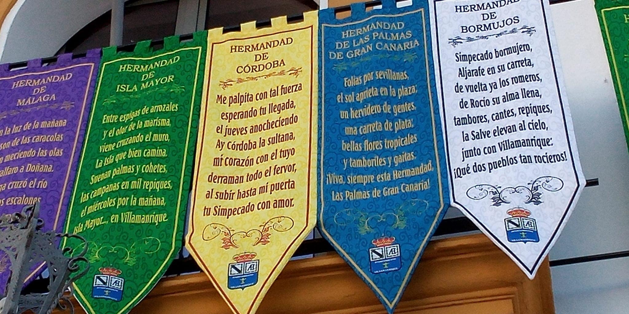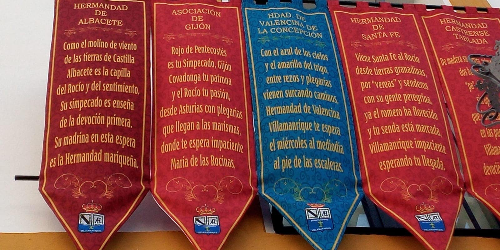 El pueblo de Villamanrique de la Condesa adorna su plaza del Ayuntamiento con un bello gesto hacia todas las Hermandades que tienen paso por su plaza en nuestro caminar hasta la Blanca Paloma.
