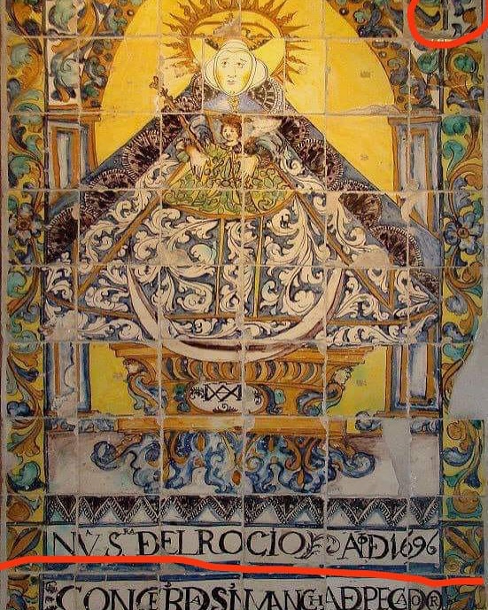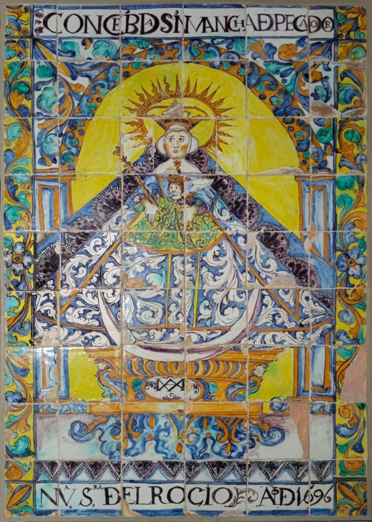El Retablo Cerámico de la Virgen del Rocío que presidía la Puerta del Sol de la antigua ermita, fechado en 1696, recupera su orden y diseño original, reintegrándose la cara original que estaba en paradero desconocido cuando se montó por primera vez en el año 2000, y que se incorporó a los fondos de Los Tesoros del Santuario del Rocío en el año 2014.