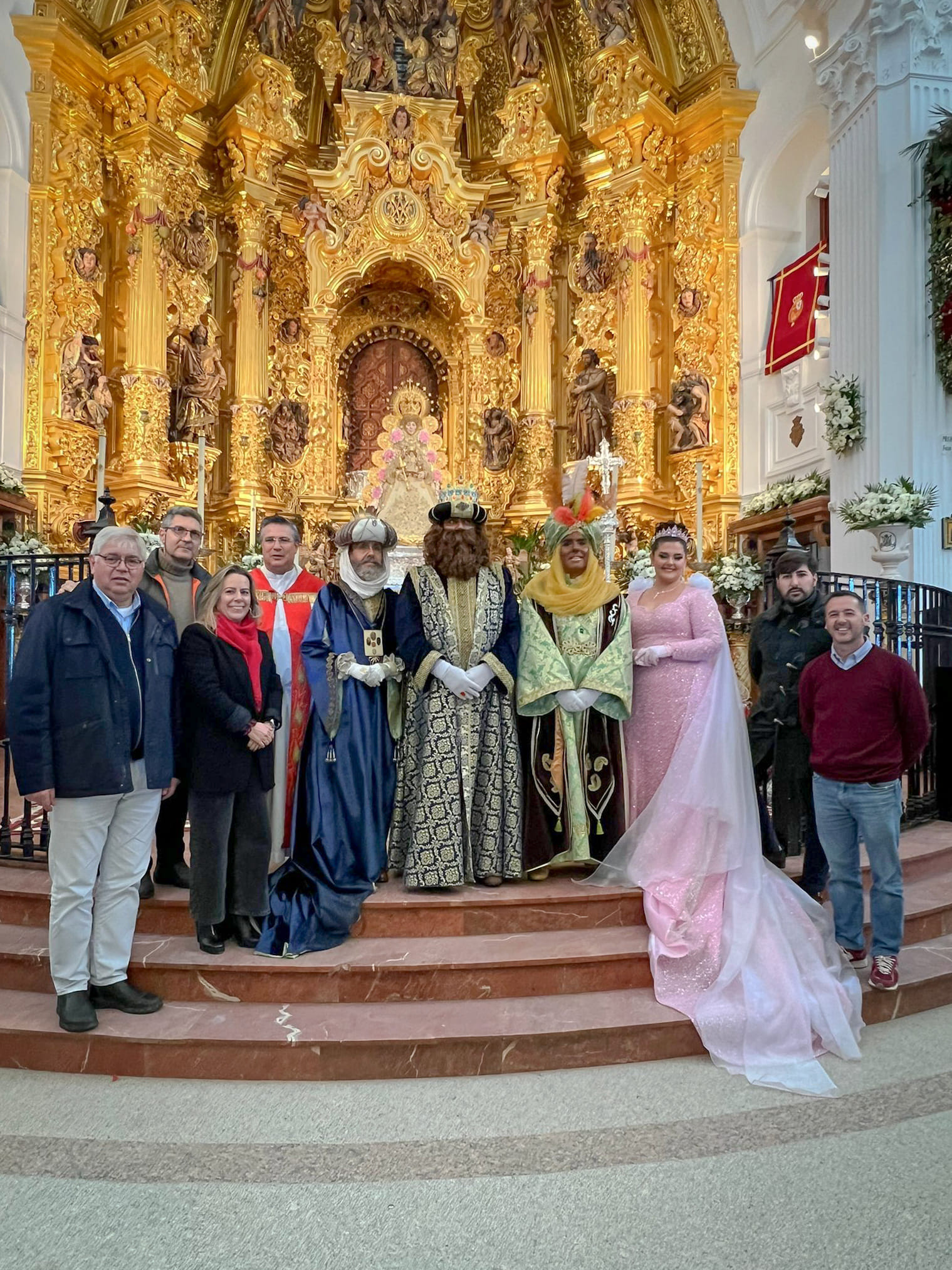 Emocionados por la visita de los Reyes Magos de Almonte, en la mañana de ayer, al Santuario. Allí se postraron ante la Virgen y el Pastorcito.