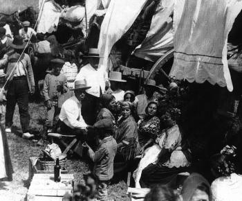 Era el de principios de siglo un Rocío que no había llegado, ni en sueños se adivinaba, la sociedad de masas. Un Rocío íntimo y familiar que en casi nada se diferenciaba del de la segunda mitad del siglo anterior Un Rocío, por supuesto, sin tractores ni coches Rocío de colchoneta de borra, de vino calentón y agua en garrafas y cantimploras.