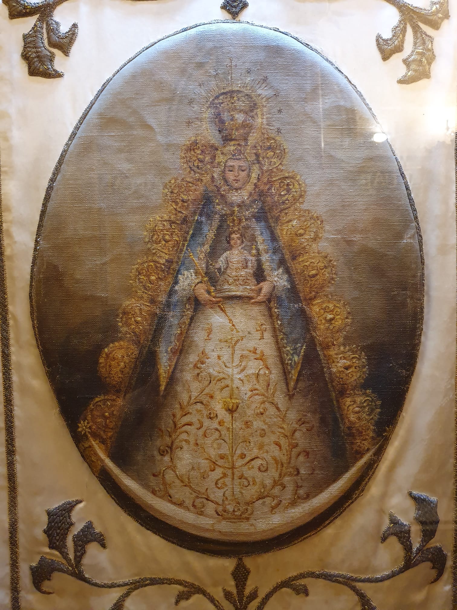 La imagen mariana de la hermandad es ataviada de la misma forma que la que aparece en el óvalo del Simpecado cordobés