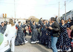 En todo el recorrido en el cruce de calles la esperaban grupos folkloricos para brindarle su bienvenida cantandole o bailandole, fue un espectáculo hermoso, y terminamos con la Misa Rociera frente a la Iglesia.