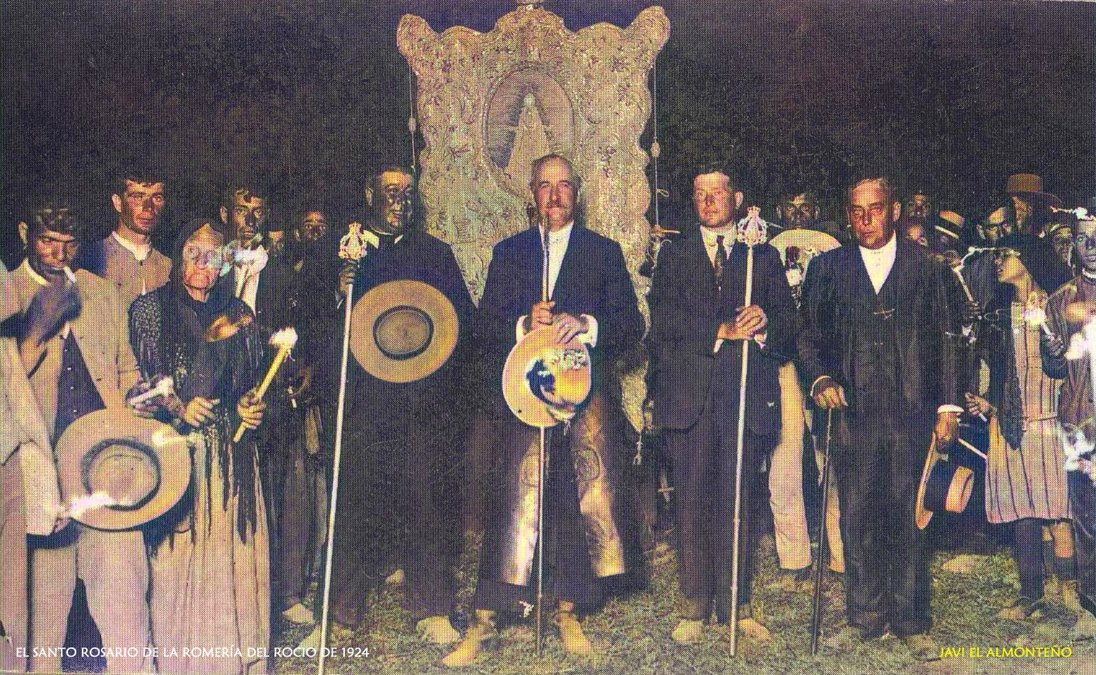 La fotografía que ilustra este artículo data de la Romería del Rocío de 1924. En ella aparece en el centro el infante D. Carlos de Borbón con vara en mano, presidiendo la Hermandad Matriz de Almonte en el Rosario de la aurora. A su derecha, Antonio Acevedo Valladolid, hijo de la recién fallecida camarista de la Santísima Virgen, Ana Valladolid Moreno. Desconocemos la identidad de las otras dos personas que se sitúa a la izquierda del Infante, uno de ellos claramente miembro de junta, quien pudiera identificarse como el presidente, Rafael Triana González. Aquel año componían la junta de la Matriz: Presidente, Rafael Triana González; Vicepresidente, Julio González Medina; Secretario, Antonio Guitart Mendoza; Tesorero, Guillermo Espinosa Colino; Vocales: Antonio Acevedo Valladolid, Francisco Moreno Cala, Pedro Martín Cáceres y Rafael Cortés Domínguez. Esta junta fue elegida el 7 de abril de 1923.