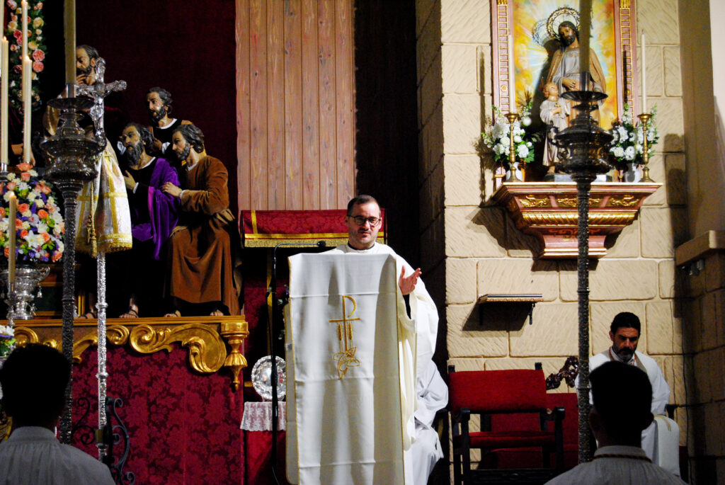 En la jornada anterior, el vicario episcopal para la Administración de los Bienes Diocesanos y Relaciones Institucionales, canónigo de la Santa Catedral, párroco de Nuestra Señora de la Merced y director espiritual de Emigrantes, Jaime Jesús Cano Gamero, ocupó la sagrada cátedra. Durante el ofertorio, se llevó a cabo la imposición de medallas a los nuevos hermanos que lo habían solicitado previamente, acompañados por el coro antiguo de Emigrantes.