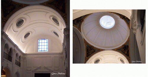 Cuantas veces al entrar en el Santuario, observamos a los, llamémoslos con todo el respeto, “turistas” mirarlo todo con ojos de novedad y sobre todo, después de ver a la Virgen por supuesto, mirar hacia arriba al techo. ¿Pero, nos hemos fijado nosotros mismos en lo que hay allí arriba?.