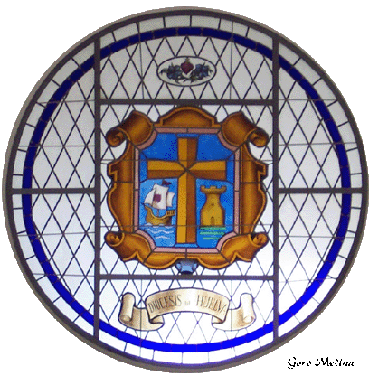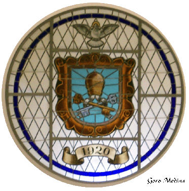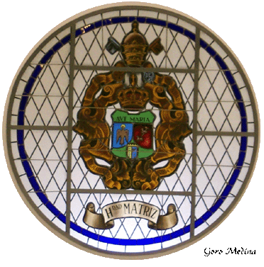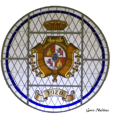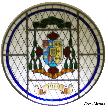 Lamento el no poder enseñaros las fotos de los escudos, porque esas ocho vidrieras no dan al exterior, por lo que no tienen luz solar, sino que, no siempre, están iluminadas con tubos y no me ha sido posible fotografiarlas.