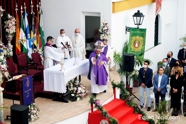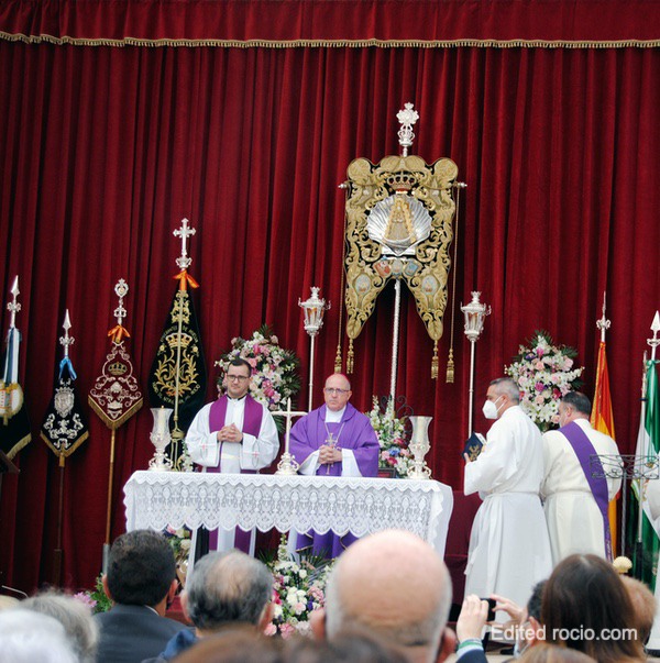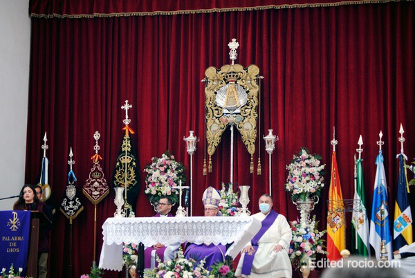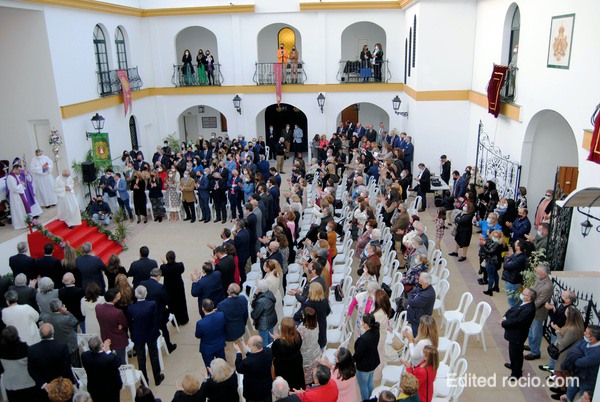 Durante el ofertorio, el obispo de Huelva bendecía la casa de hermandad haciendo votos para que la misma fuera “lugar de encuentro de toda la ciudad de Huelva y de devoción a la Virgen del Rocío”.