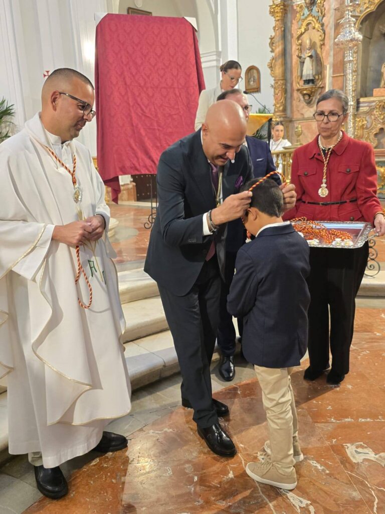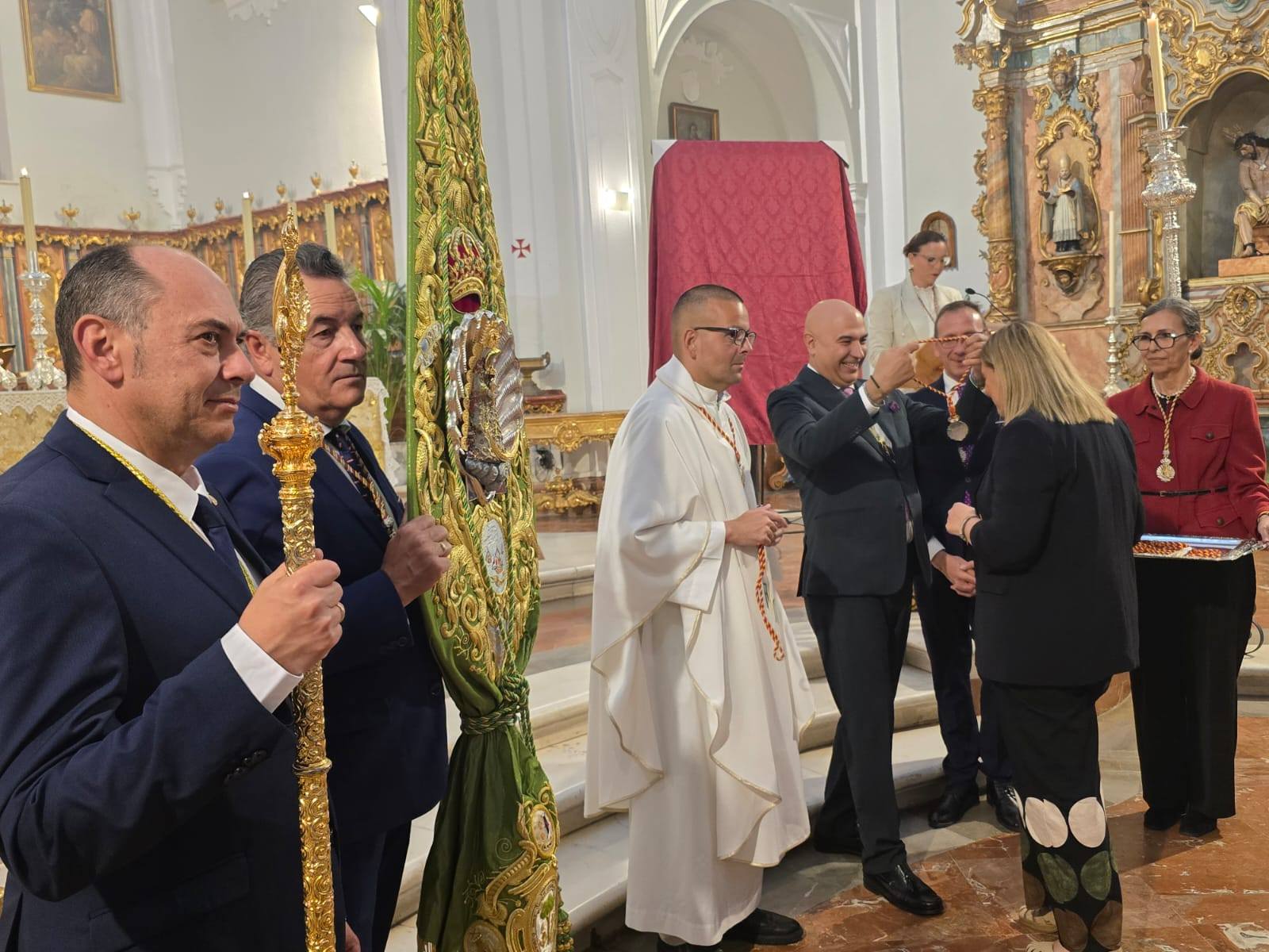 Durante el ofertorio tuvo lugar uno de los momentos más significativos de la noche: la imposición de la medalla a los nuevos hermanos. El presidente de la filial rociera, José Francisco Garrido Cruzado, destacó que los nuevos miembros “son recibidos con los brazos abiertos en nuestra familia”.