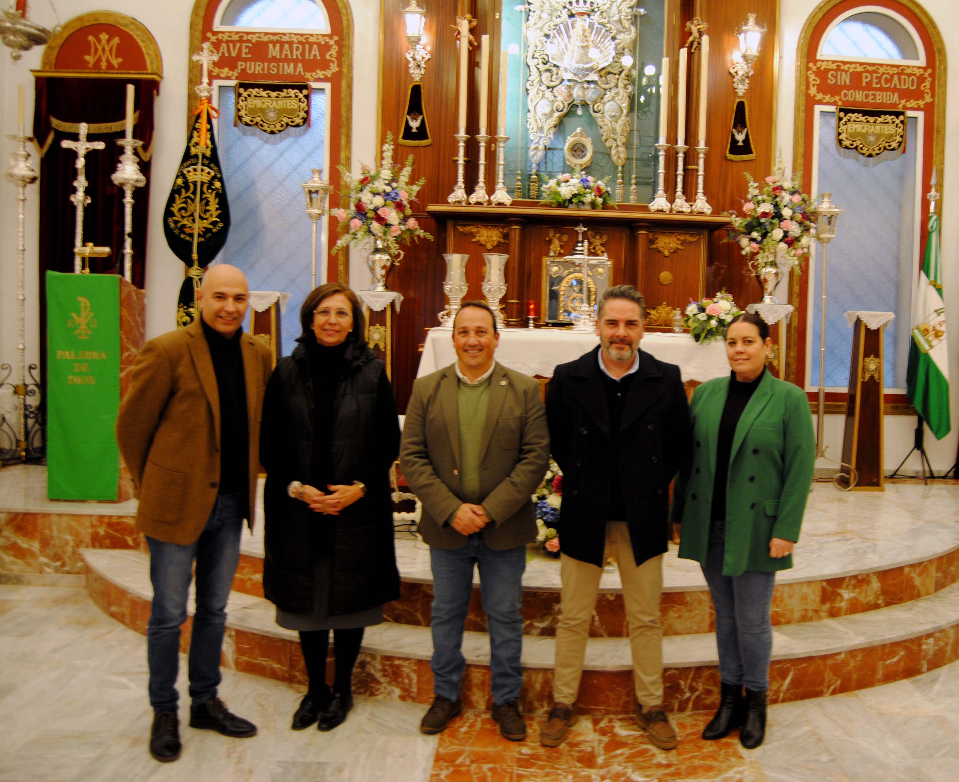 Con antelación Garrido y Cabrera suscribieron el acuerdo por el que este artista, con una extensa trayectoria profesional, será quien con su arte llene de fe rociera cada rincón de nuestra ciudad y convencidos de que sorprenderá a todos los hermanos y simpatizantes de la hermandad de las flores.