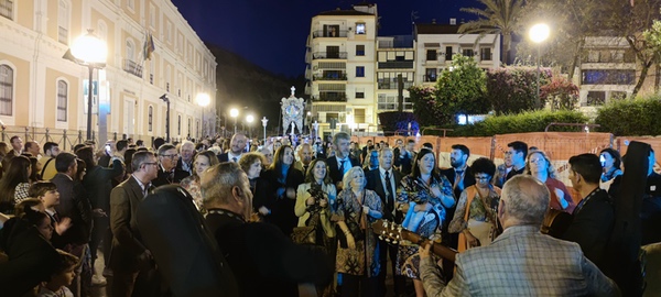 Terminaba la función principal con el canto de la Salve y los vivas a la Virgen del Rocío, Reina de las Marismas, Blanca Paloma, Pastorcito Divino y junta de gobierno de la hermana mayor Cristina Serrat., mientras el presidente finalizaba diciendo viva la hermana mayor.