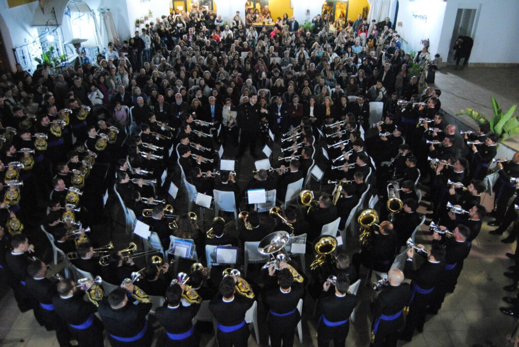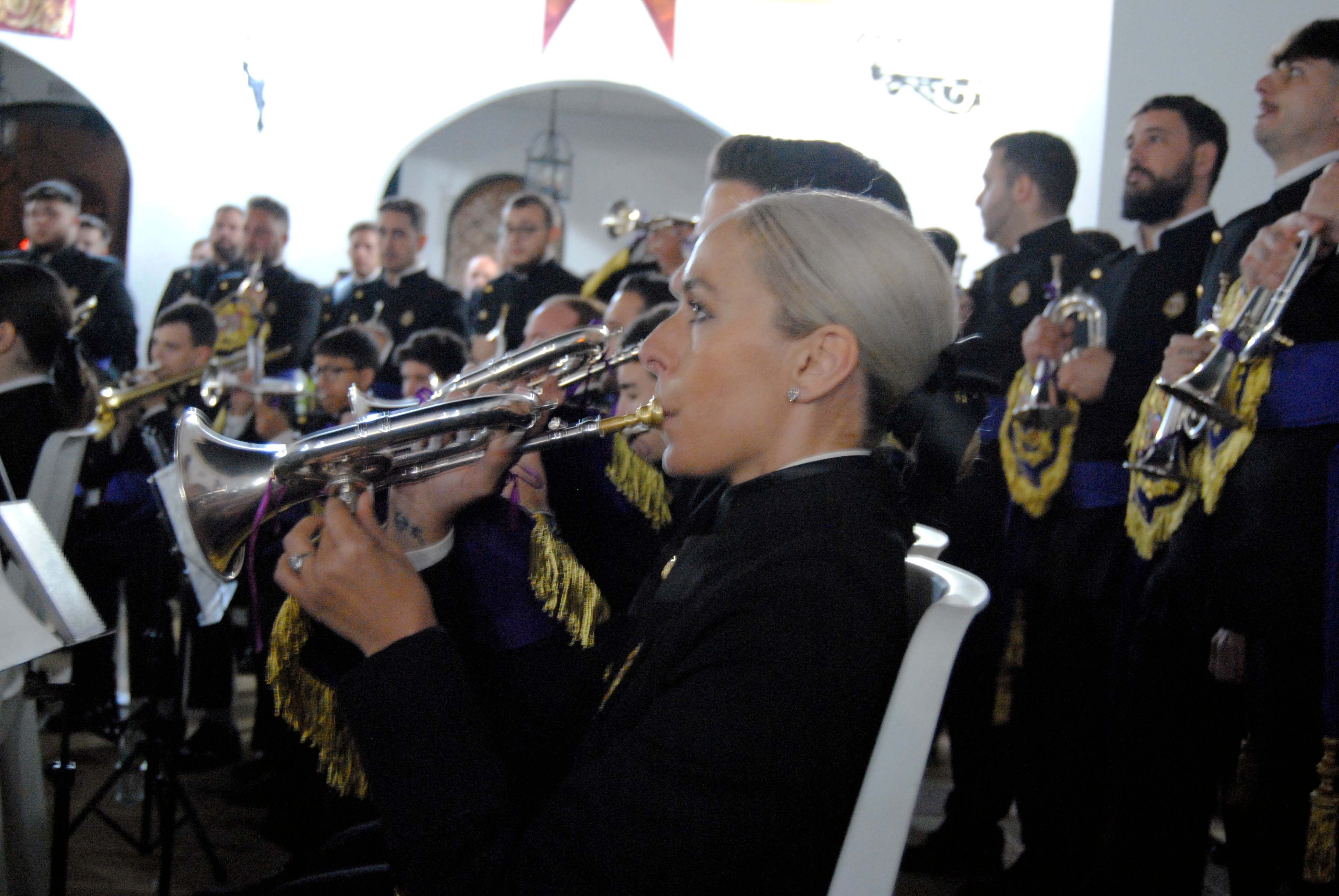 Durante el concierto, la banda interpretó obras emblemáticas como ‘En la orilla de Dios’ de Jesús Quintero y ‘Mar de almas’ de Francisco Javier Torres Simón. Mientras, la saetera Cristina González, miembro del coro de la Hermandad de Huelva y del grupo Retama, conmovió a los presentes con su interpretación de ‘Padre Nuestro’, elevando la atmósfera espiritual de la velada.