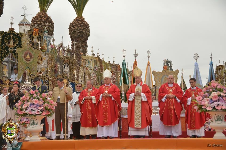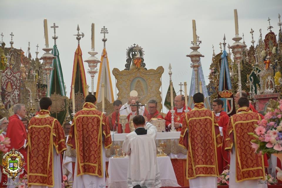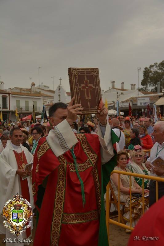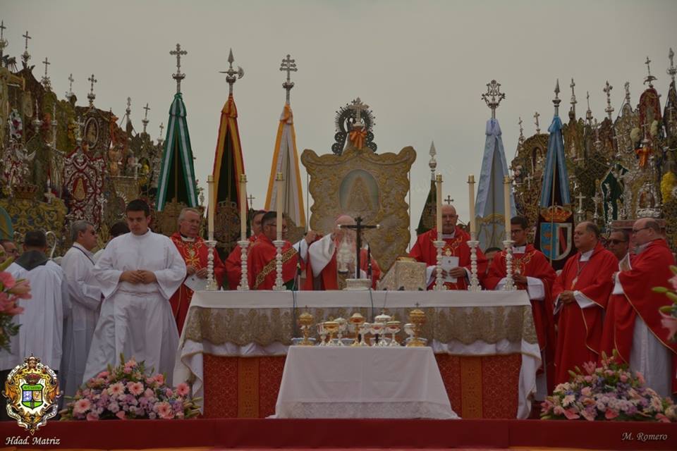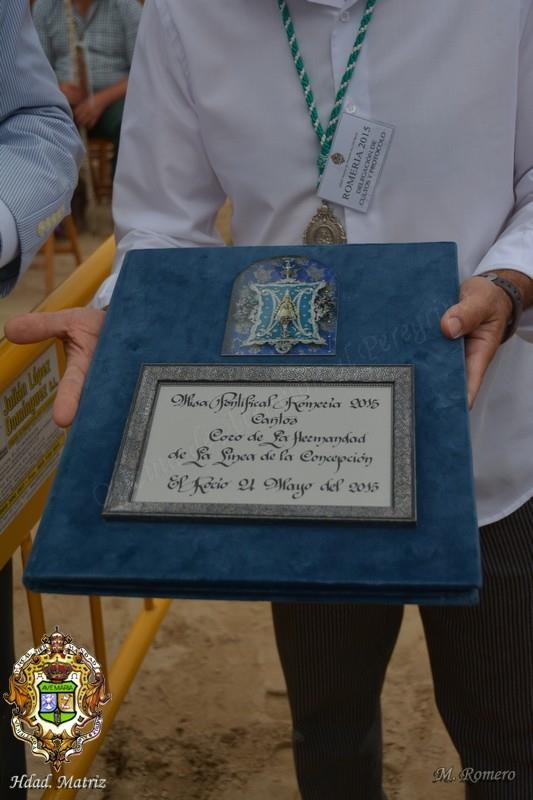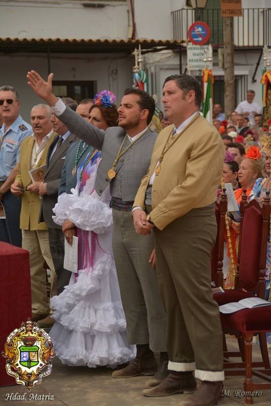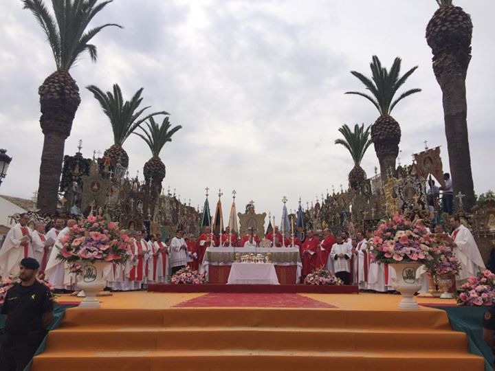 La Santa Misa ha terminado a las 12,07 horas del 24 de mayo de 2015 con el canto de la Salve del OLÉ cerrando el Acto con los Vivas del Hermano Mayor de Almonte de este año 2015, D. Antonio Acosta.