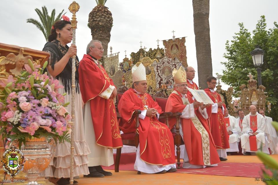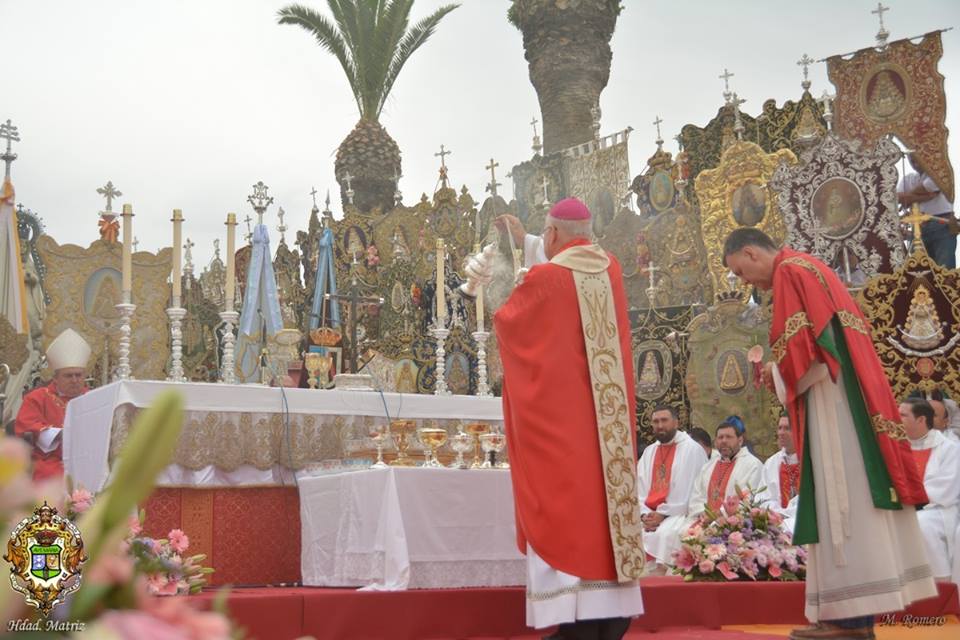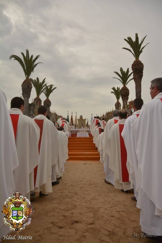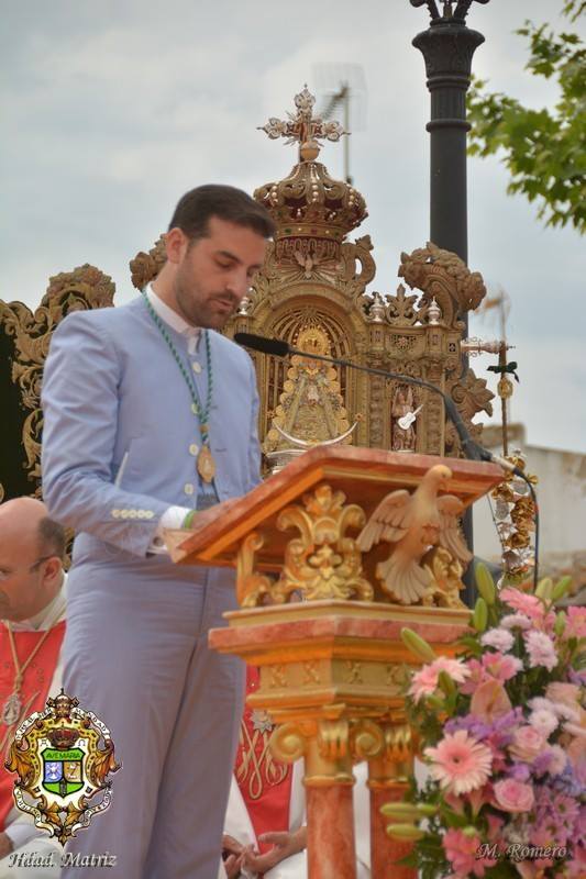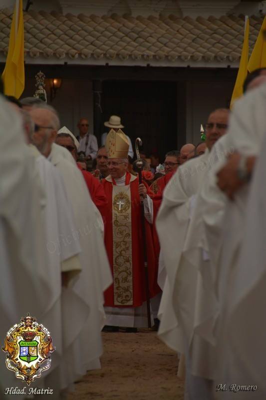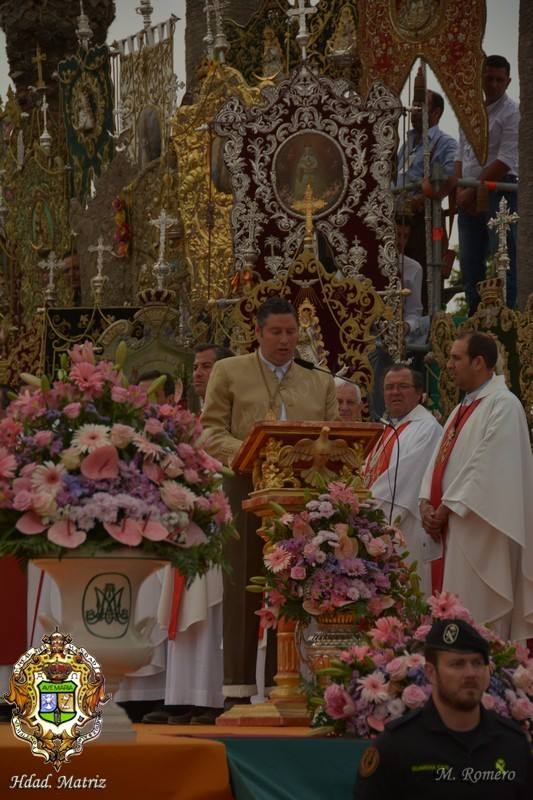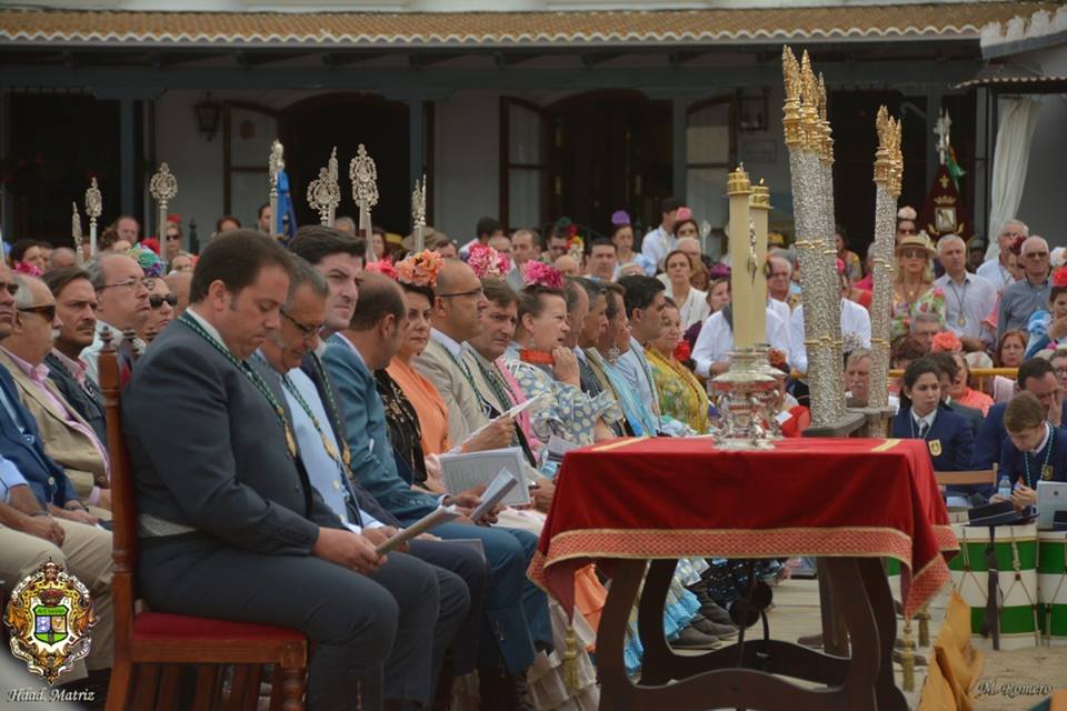 La Santa Misa ha terminado a las 12,07 horas del 24 de mayo de 2015 con el canto de la Salve del OLÉ cerrando el Acto con los Vivas del Hermano Mayor de Almonte de este año 2015, D. Antonio Acosta.