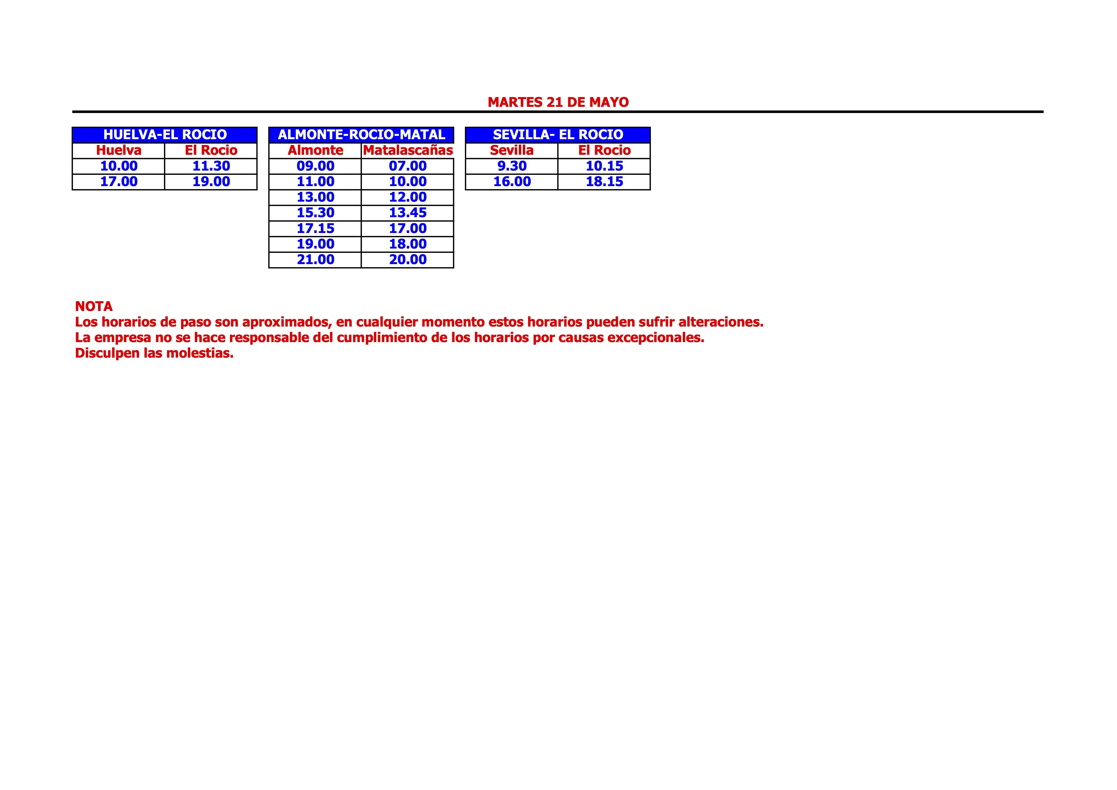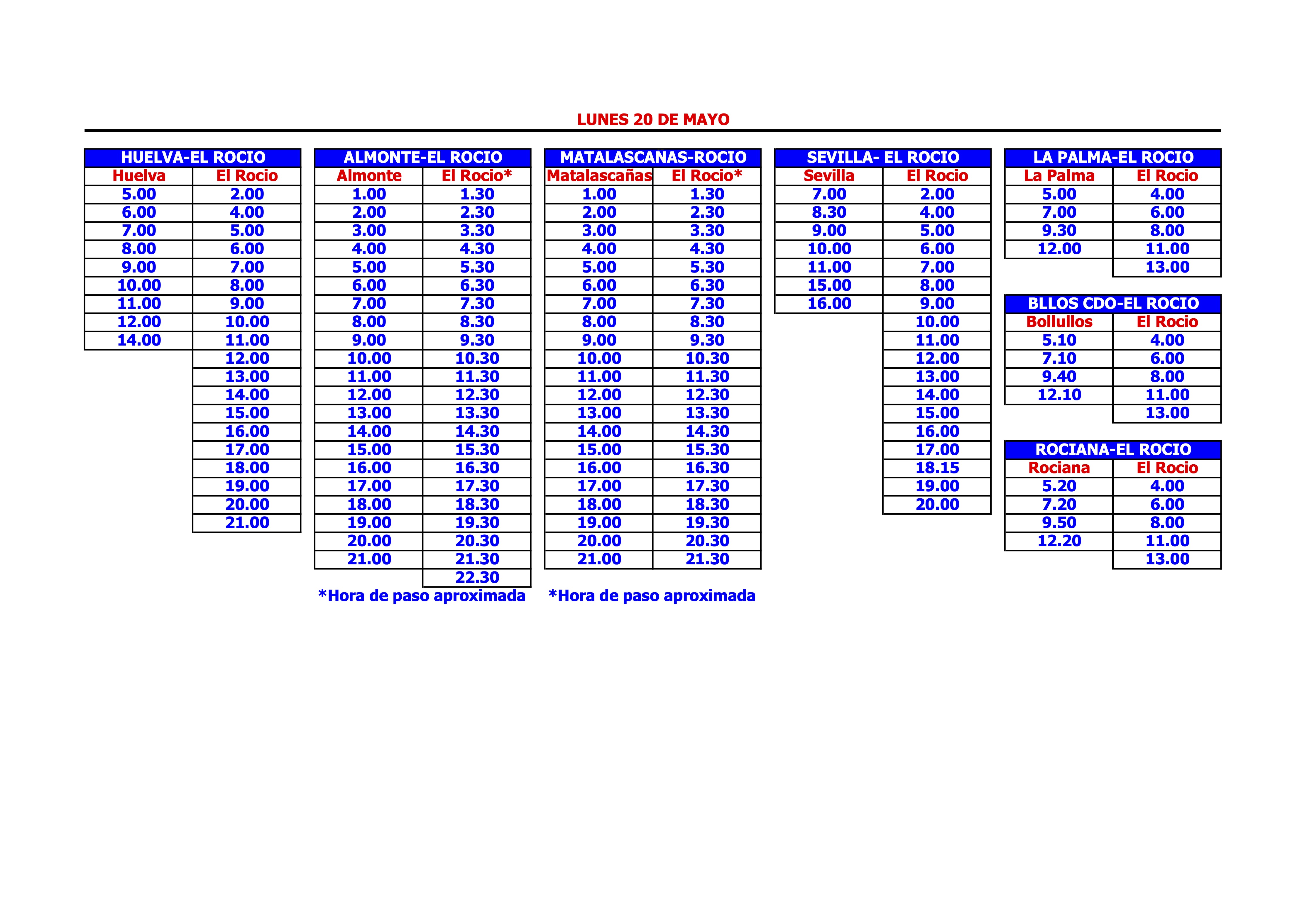 Empresa Damas – Horarios especiales Romería del Rocío 2024.
