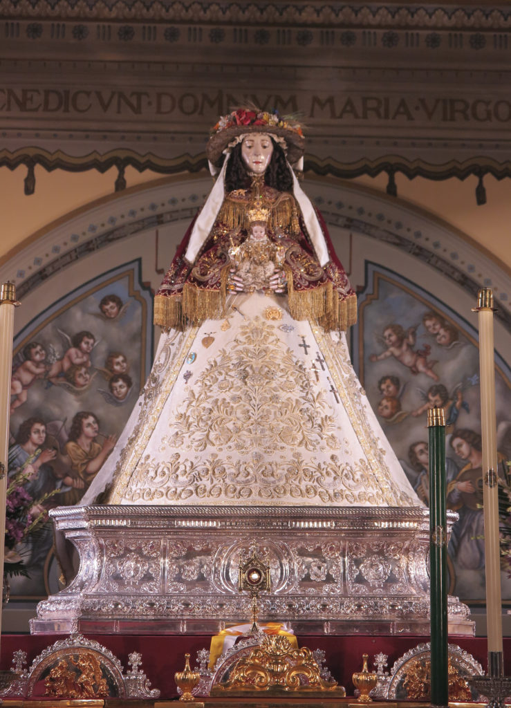 La Virgen está entronizada en la peana de las andas de plata, regaladas por la familia Cepeda Soldán en 1933. La retirada del palio del paso permitirá seguir avanzando en los trabajos de prueba y ensayo de la nueva estructura para las andas que se han terminado recientemente en los talleres de INESPASA, en Sevilla. Así como avanzar en el diseño de los nuevos varales.