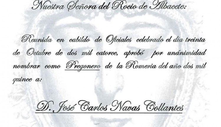 Hoy se hace público el nombramiento por la Junta Directiva de la Hermandad de Nuestra Señora del Rocio de Albacete, como Pregonero de sus Glorias y Romeria del …