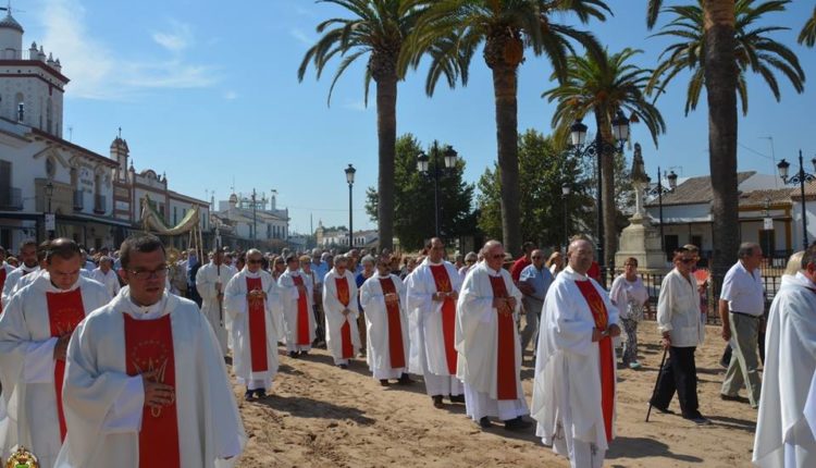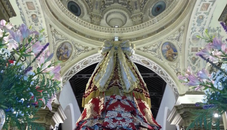 Hoy, 16 de agosto de 2019, se bendice el pañito y el capote que cubrirán a Nuestra Señora del Rocío durante el camino hasta Almonte. …