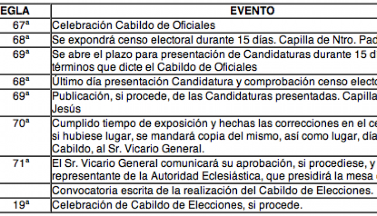 Esta Junta de Gobierno reunida en Cabildo de Oficiales y tras la autorización correspondiente de la Vicaría General, ha decidido convocar un segundo proceso electoral …
