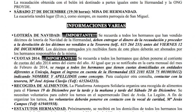 Os adjunto la carta con la agenda de actividades de este mes de Diciembre, así como la felicitación de nuestra Hermandad para el próximo tiempo …