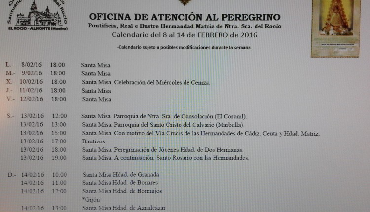 La Oficina de Atención al Peregrino nos remite el Calendario de Peregrinaciones del 8 al 14 de febrero de 2016.