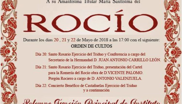 Los días 20, 21 y 22 de Abril la Hermandad Ntra. Sra. del Rocío de Barcelona celebra el Solemne Triduo en Honor de Nuestra Títular …