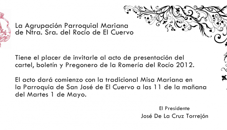 Agrupación de El Cuervo – Cartel, Boletín y Pregón. El próximo día 1 de mayo a las 11 de la mañana en la Parroquia de …