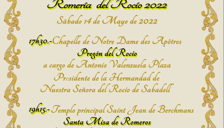 Nuestra Hermandad de Nuestra Señora del Rocío de Bruselas celebrará la Misa Sabatina de febrero del2022, el próximo sábado 19 de febrero a las 19.15 …