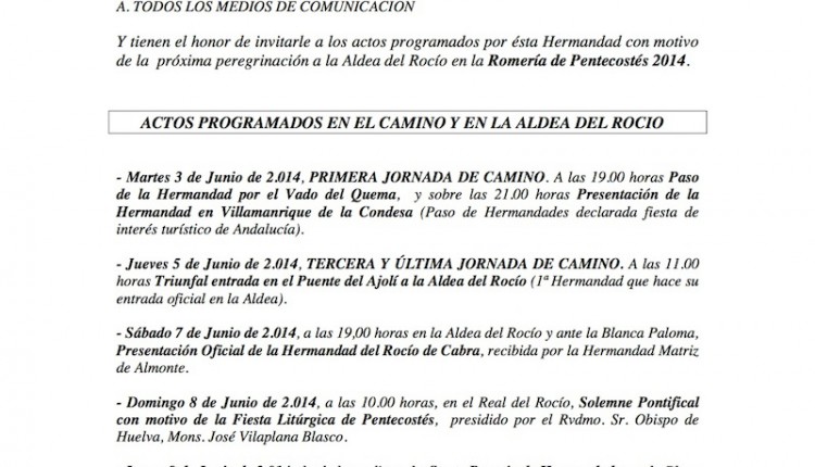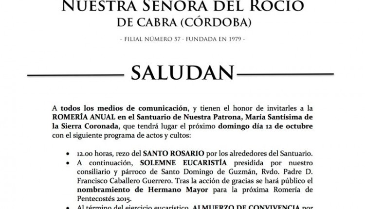 Peregrinaciones Extraordinarias de las Hermandades del Rocío del domingo 23 de noviembre 2025 Domingo 23 de noviembre de 2025 9 horas- San Antoni de Portmany …