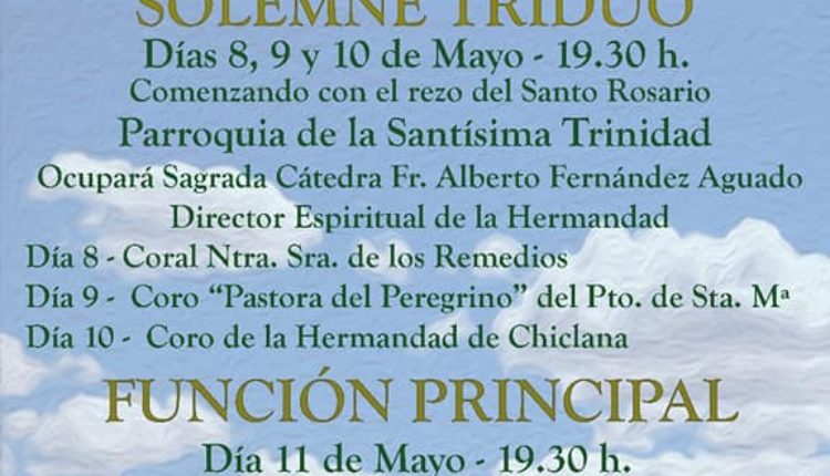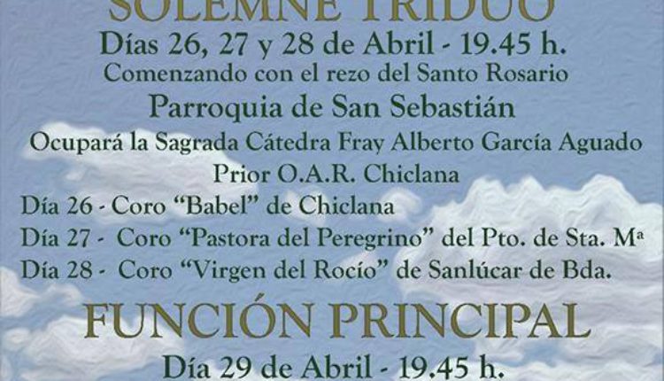 La Hermandad de Chiclana celebra Solemne triduo los días 26,27 y 28 de abril de 2017