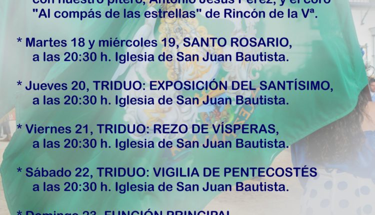 Actos de preparación de nuestra Romería de Pentecostés 2024. Aunque en los carteles adjuntos figura toda la información detallada, el resumen de los actos es …