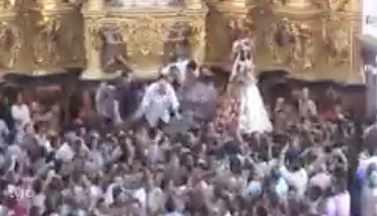 El Rocío en Almonte 1991 – Llegada al Altar de la Parroquia de la Asunción en agosto el 20 de agosto de 1991.