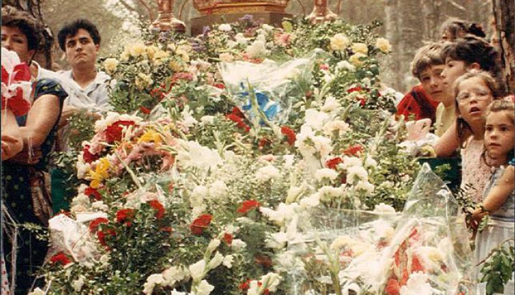 Fotografía tomada para la Romería del Rocío de 1986, después del fallecimiento de la camarista Ana González el día 5 de mayo de 1986, a …