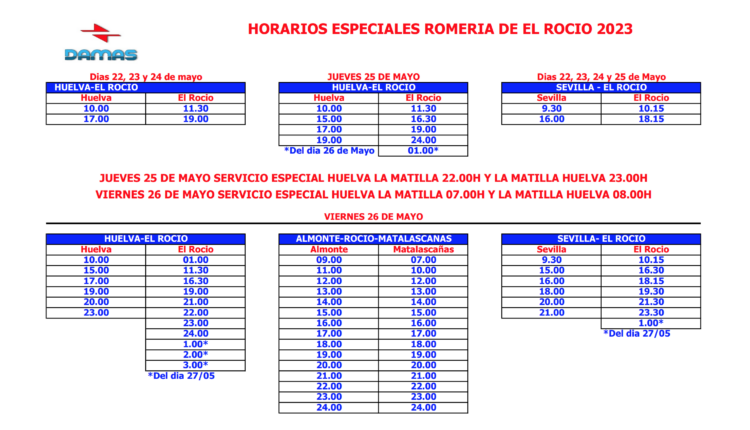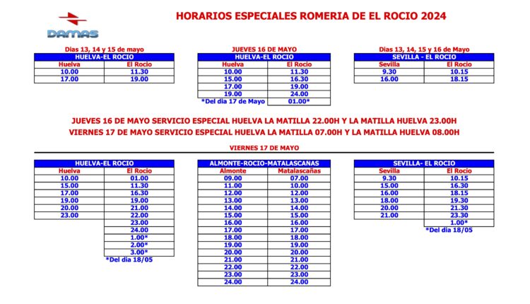 Empresa Damas – Horarios especiales Romería del Rocío 2024.