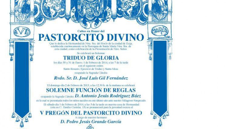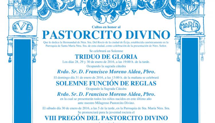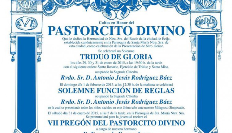 La Hermandad de Écija celebra Triduo de Gloria en Honor del Pastorcito los días 28,29 y 30 de enero de 2016