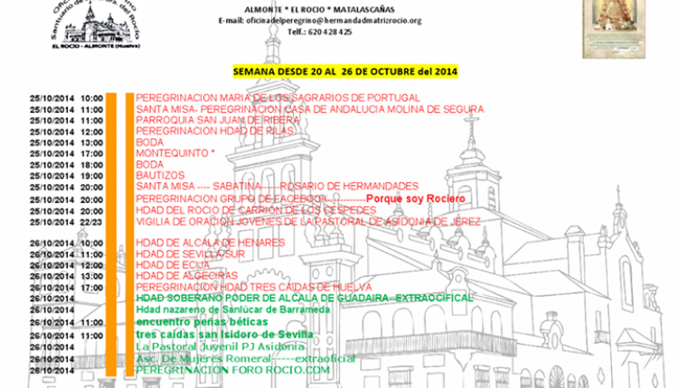 Peregrinaciones extraordinarias del sábado 25 y domingo 26 de octubre de 2014 Sábado 25 de octubre Peregrinación del FORO DEL ROCÍO.COM 17 horas – Hermandad Del …