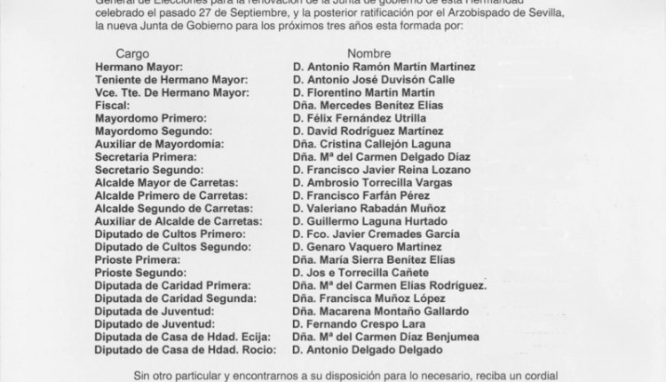 Hermandad de Écija – Nueva Junta de Gobierno