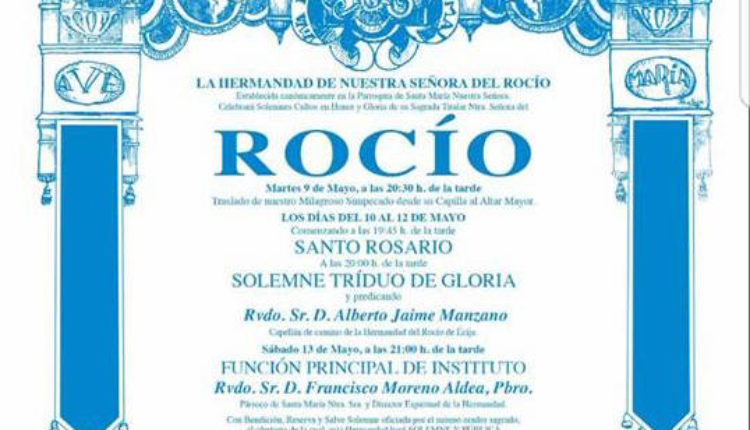 La Hermandad de Écija celebra Santo Rosario, Solemne Triduo y Pregón Rociero 2015 a cargo de Dª Yaye Rubiales Muñoz.